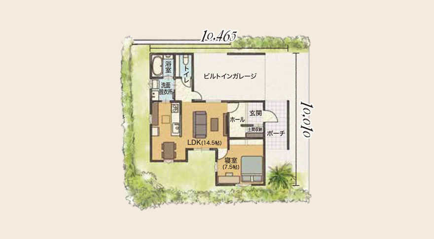 生活動線にも配慮した間取りで、コンパクトでも広々とした空間が魅力です。趣味はもちろん、日々の暮らしでさえも豊かに感じることのできる、大人のゆとりを楽しむための住まいです。